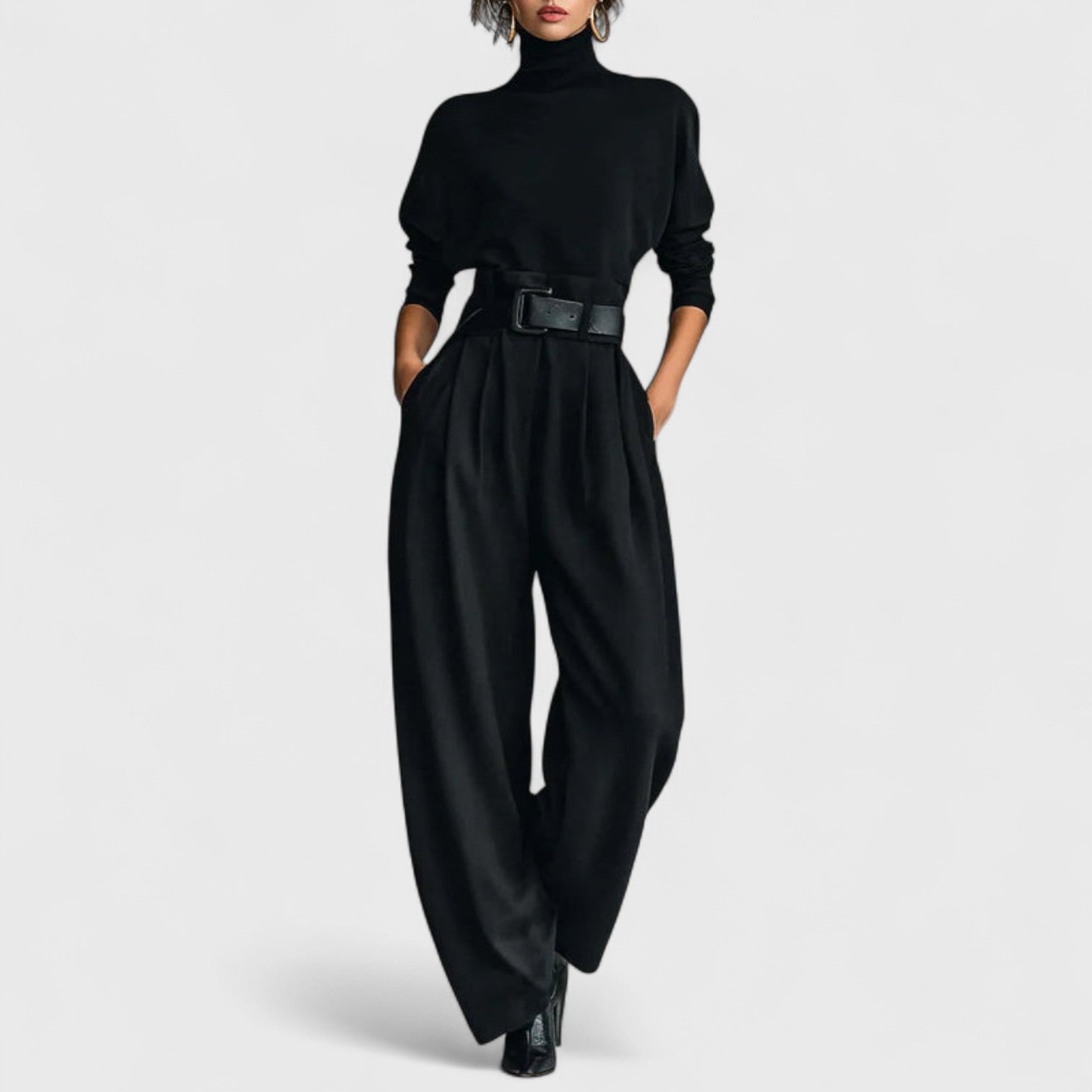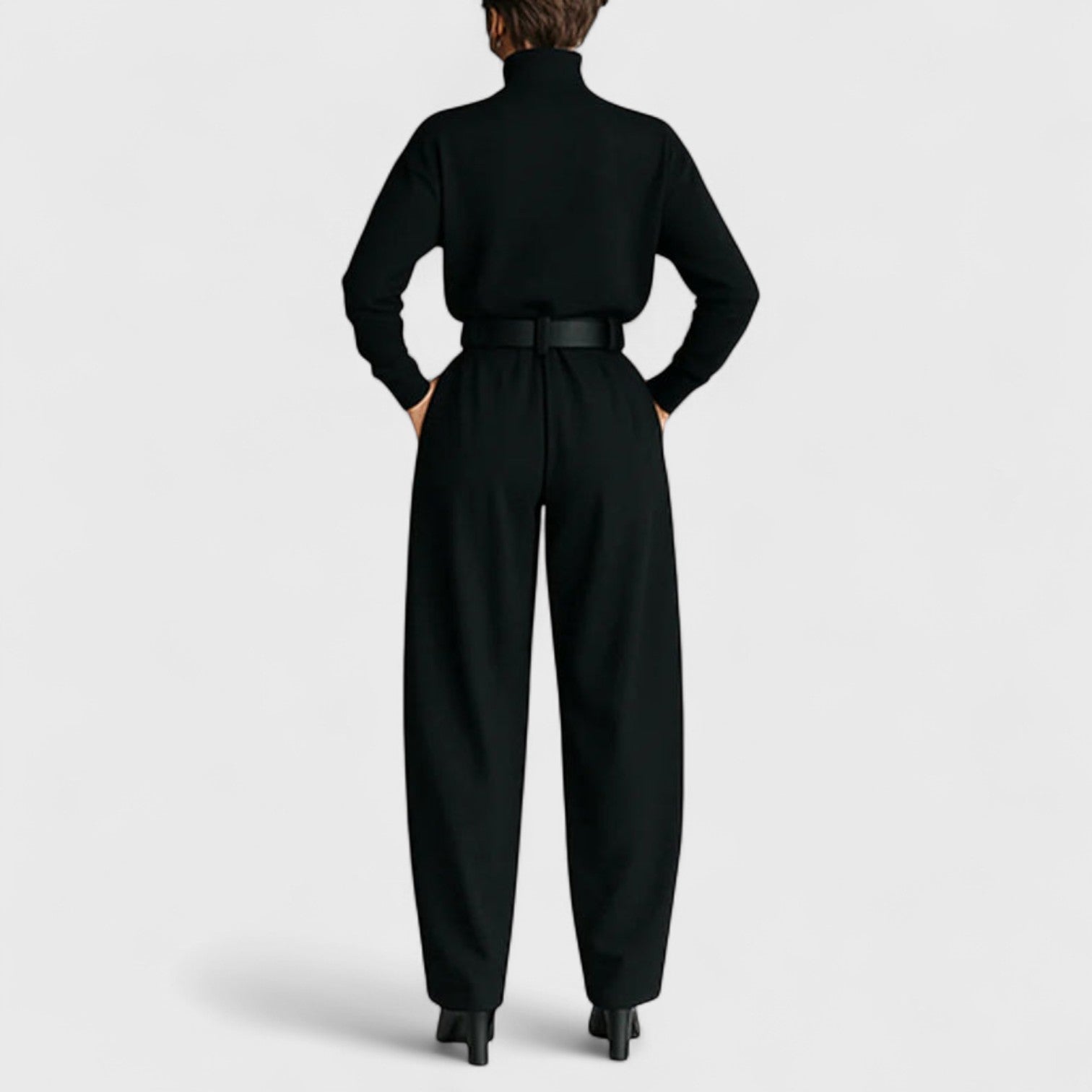 Élodie | Combinaison Noire à Coupe Large – Élégance Minimaliste