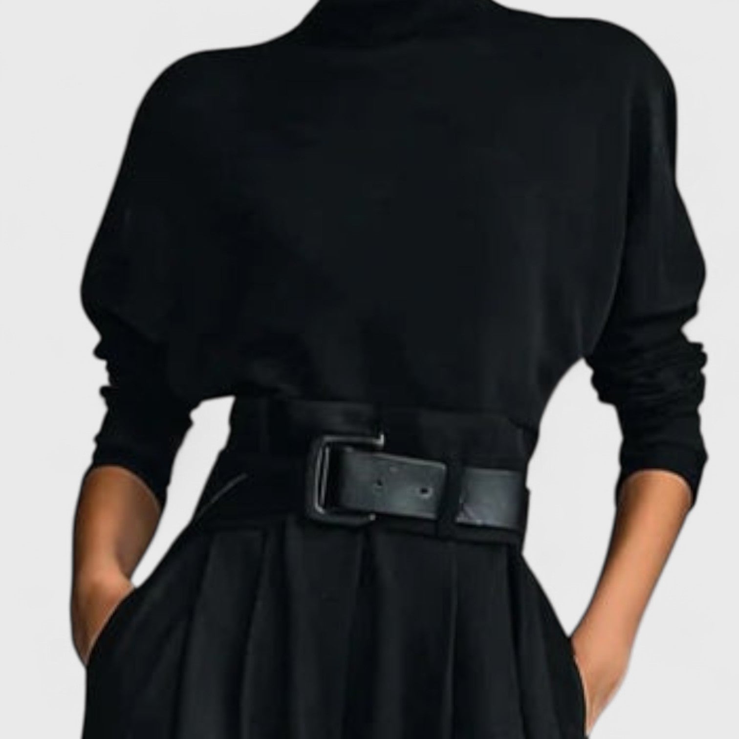 - Col montant et manches longues : une touche moderne et raffinée, parfaite pour l’automne et l’hiver.